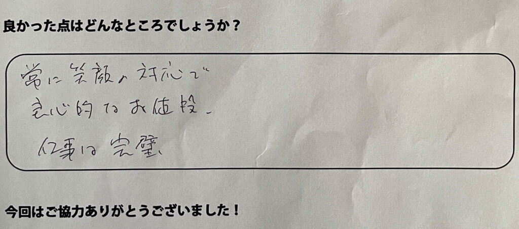 お褒め頂きありがとうございます!これからもお客様に喜んでいただけるよう努力してまいります!