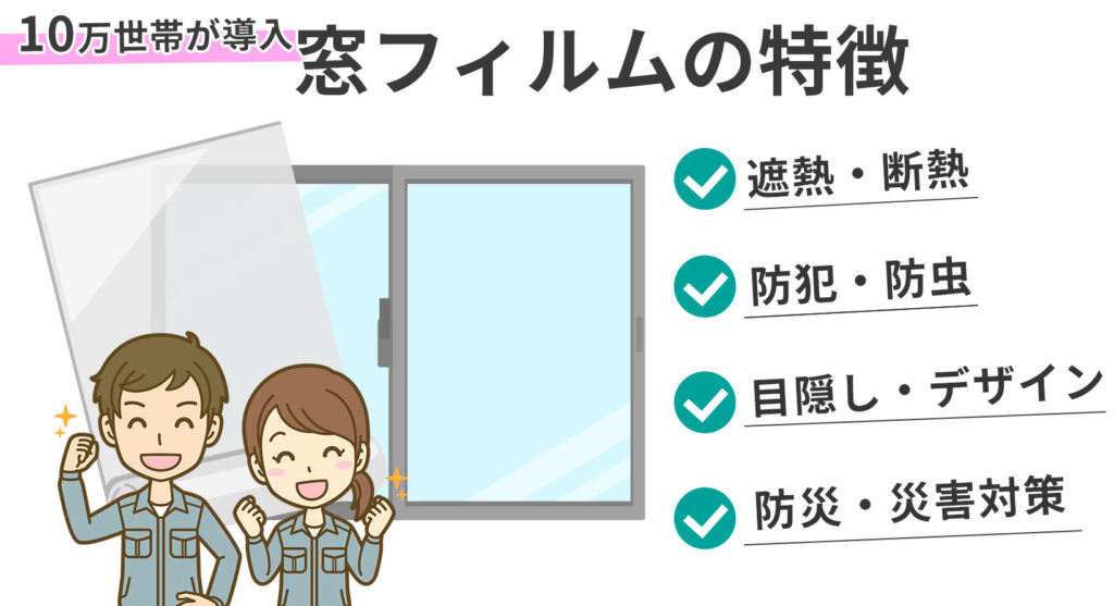 窓ガラスフィルム施工業者が最短即日お伺い | 遮熱・防犯・紫外線カットなどメリット多数!