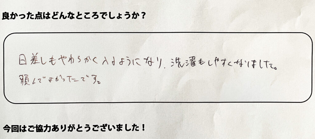 日差しがやわらかく入るようになり、洗濯もしやすくなりました。頼んでよかったです。