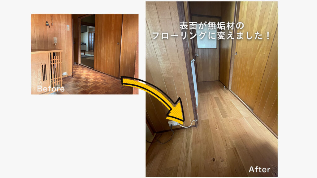 | 内容 | 廊下とダイニングのフローリング上張り |